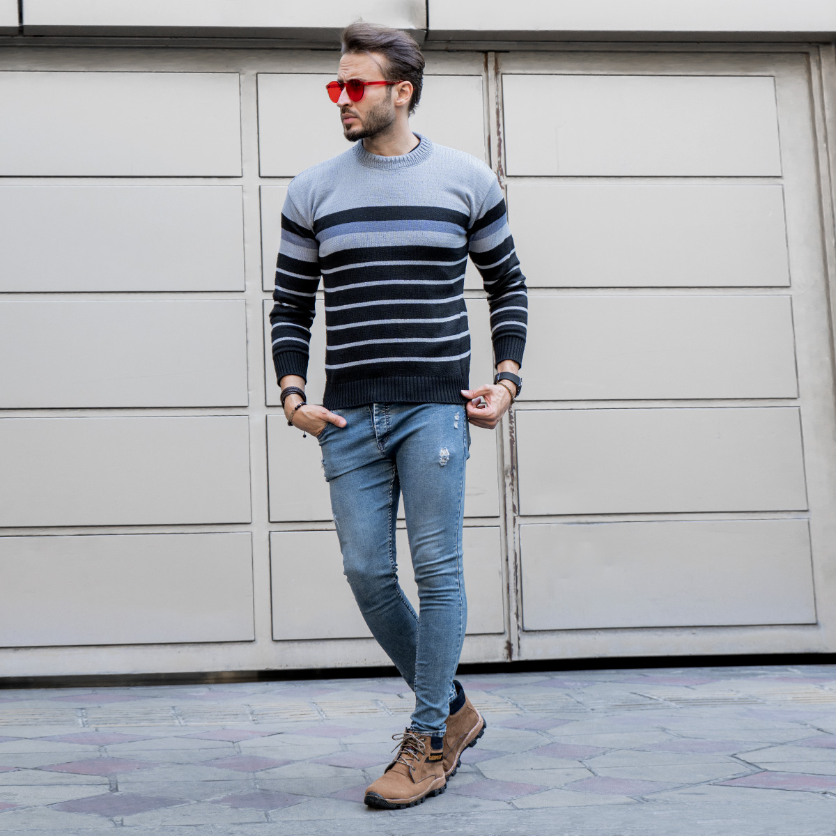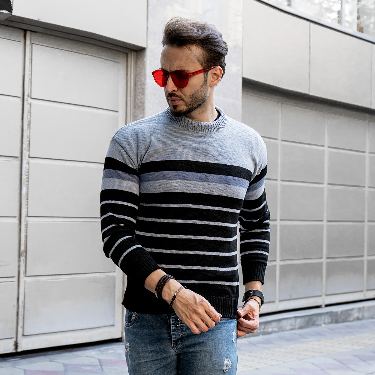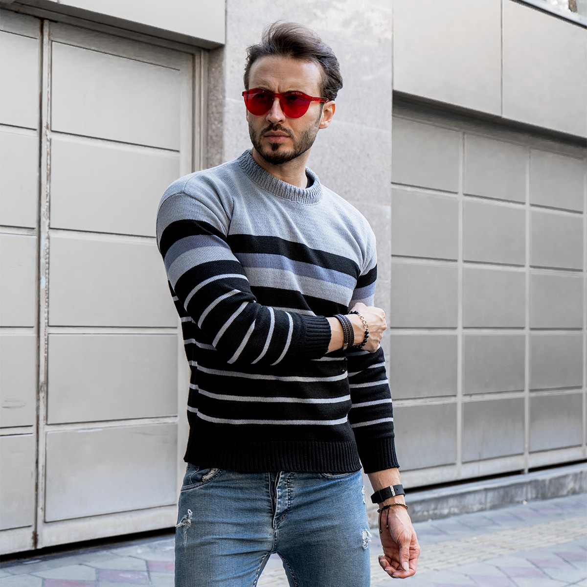 رنگبندی :راه راه مشکی طوسی