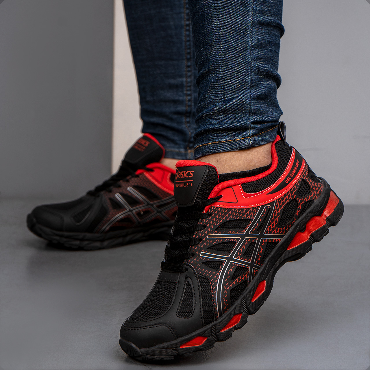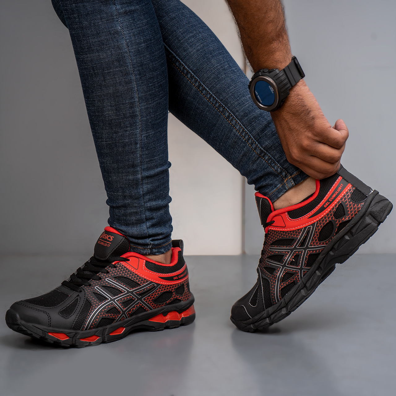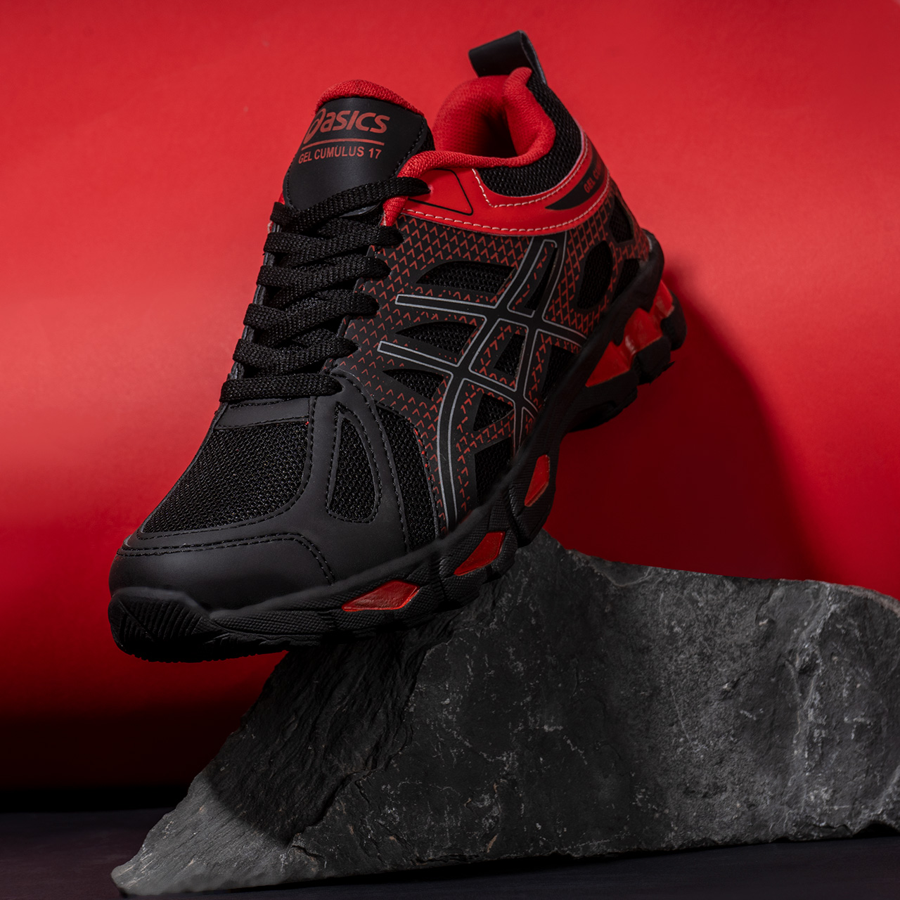 کفش ورزشی اسیکس مشکی-قرمز مردانه مدل GEL17