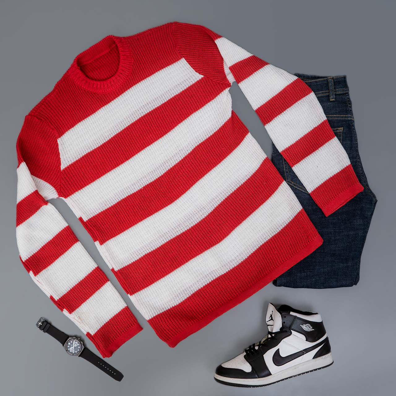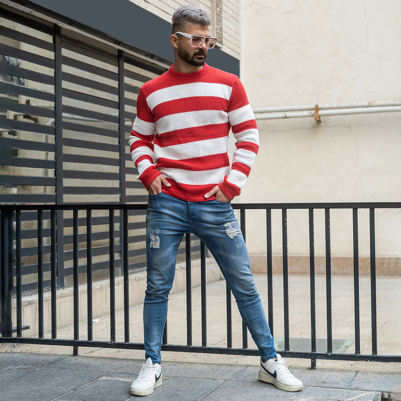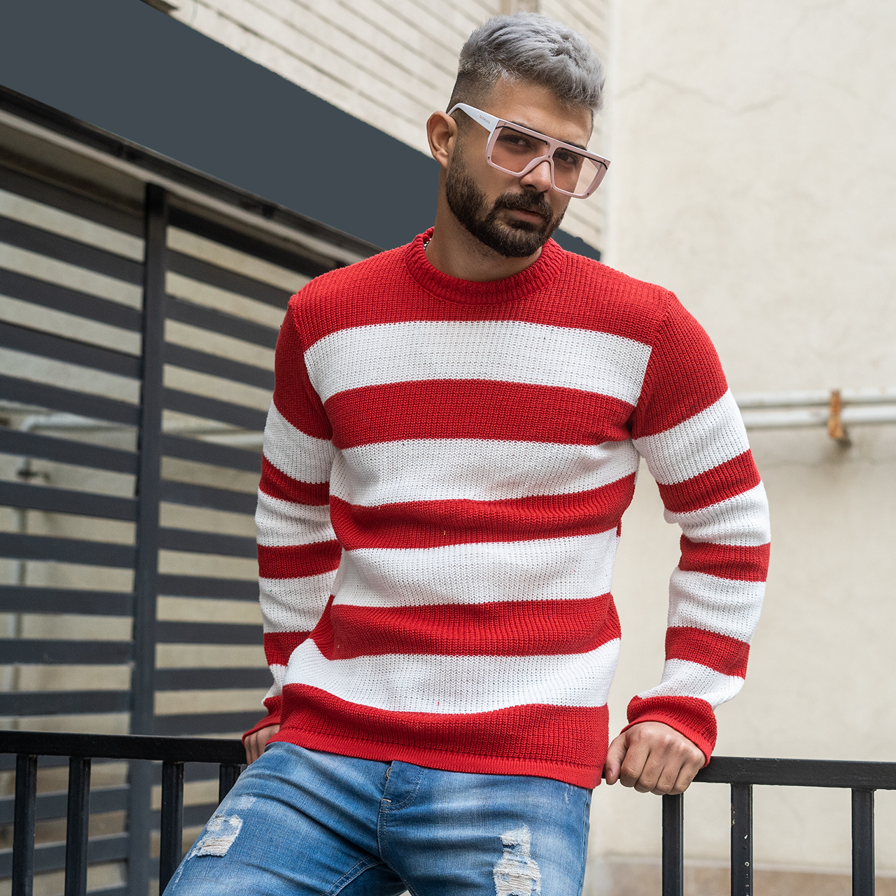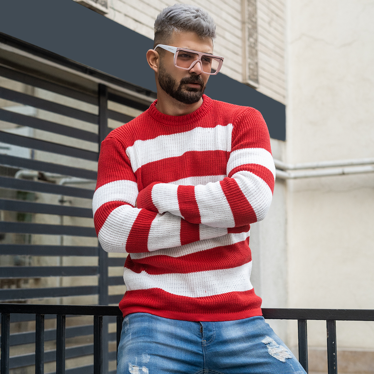 پلیور مردانه راه راه سفید قرمز مدل Mahyad