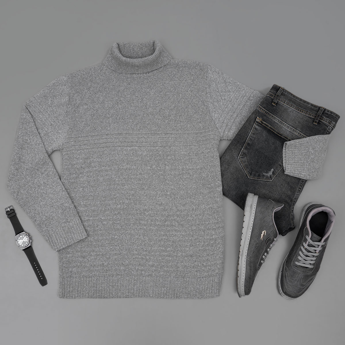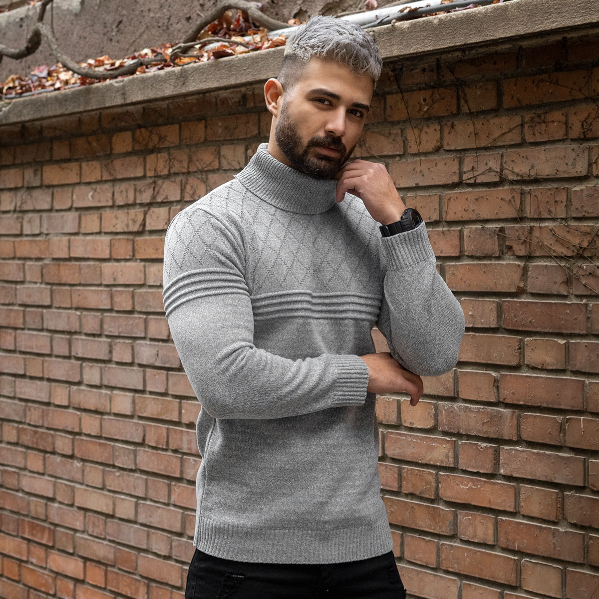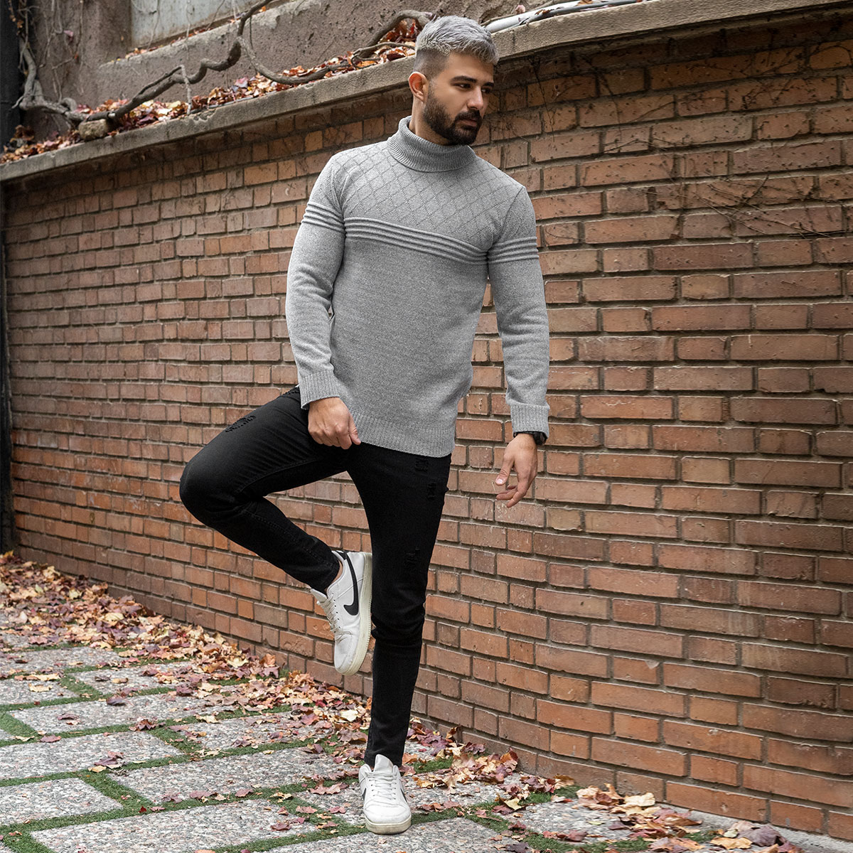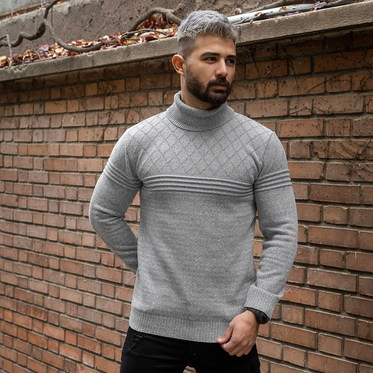 پلیور مردانه طوسی طرح لوزی یقه اسکی مدل Havash