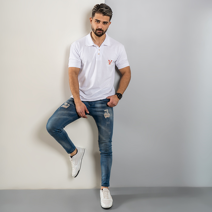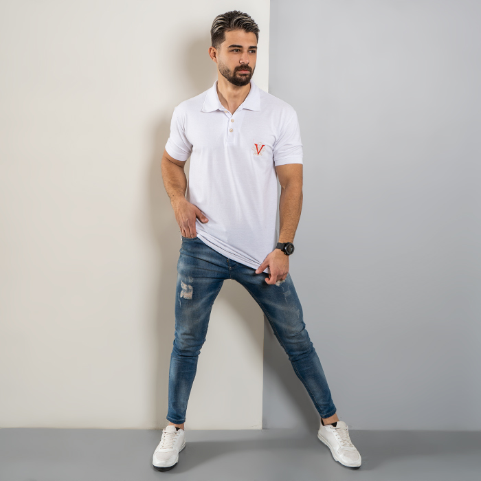 تیشرت V سفید مردانه مدل Sadra