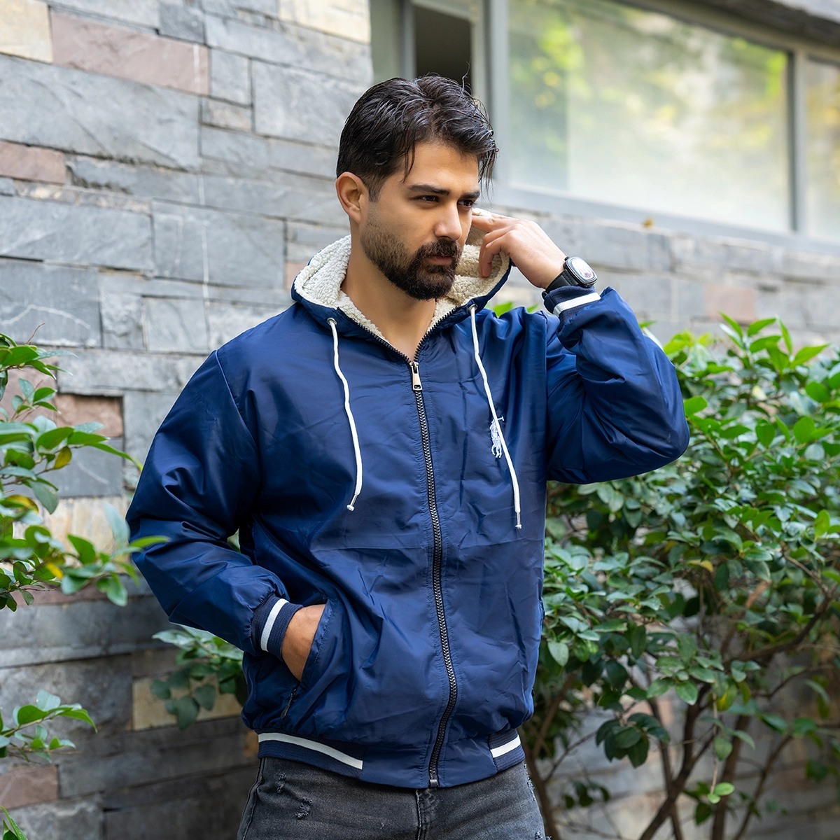 کاپشن مردانه سرمه ای داخل خز مدل P212
